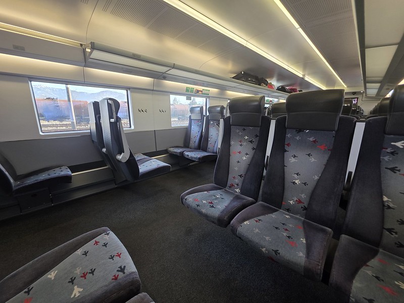 Oooh, Stadler, like the Greater Anglia trains I’m now so used to. With that, it was time to board and there were document checks when boarding on, with the staff member pointing us where to go. He seemed cheerful and helpful, as did all the staff on board the train.