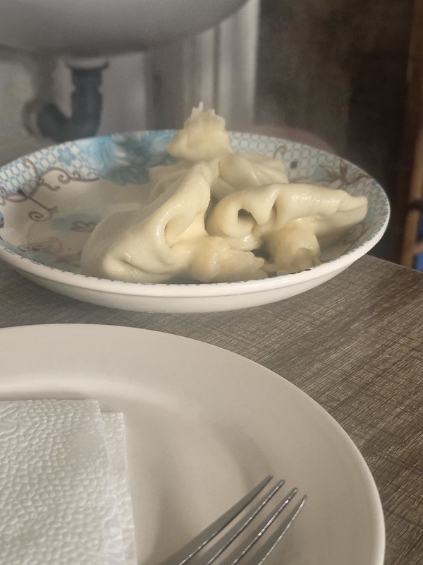 Jonathan had an idea to visit a back-street khinkali restaurant which seemed like something of an adventure. Khinkali are traditional Georgian dumplings that consist of pleated dough parcels typically filled with a spiced mixture of meat, such as beef, pork, or lamb along with aromatic herbs. The defining characteristic of the dish is the savoury broth trapped inside the dough, which is created as the meat juices release during the boiling process. Eating them is a specific ritual in Georgia, they are held by the ‘kudi’ (hat) or thick dough knob at the top, which remains uncooked and should be discarded, while it’s expected the diner makes a hole in them and drinks the soup. It all sounded like a right faff.