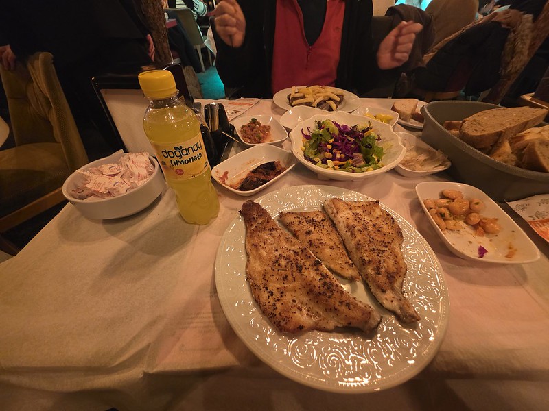 For our evening meal in Erzurum, we opted for a fish restaurant as Jonathan’s vision of trying some sort of fatty lamb dining option (a local delicacy, but seemingly all those restaurants sell) seemed just a little too decadent to me as I don’t like fatty food and I don’t usually eat lamb.
