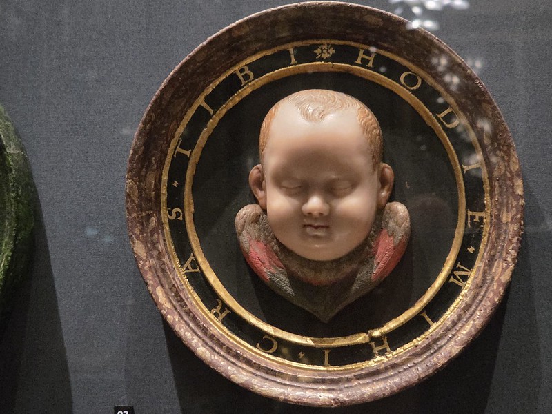 This is a sixteenth century wax head of a sleeping child, mounted like a holy relic in a carved wooden tondo. I’m really more showing off there that I have learned a tondo is a circular work of art…. This is another piece of Habsburg-era oddness, a 1589 Austrian creation and I more wonder whether this child is at rest or quietly plotting something. Made of wax and wood, this disembodied cherub seems to me to be more of a masterpiece of serene discomfort. The inscription around the frame, “Hodie mihi, cras tibi”, translates loosely as “Today me, tomorrow you” which is not exactly comforting, especially when delivered via a child’s severed (albeit sleeping) head. It was likely designed as a memento mori, a not-so-subtle reminder of the fleeting nature of life, which I’m not sure people living at this time needed additional reminders of. The museum notes that these are fragile and rarely survive, although I suspect someone shoved it in a cupboard as I think it’s more unsettling than beautiful. But each to their own…..