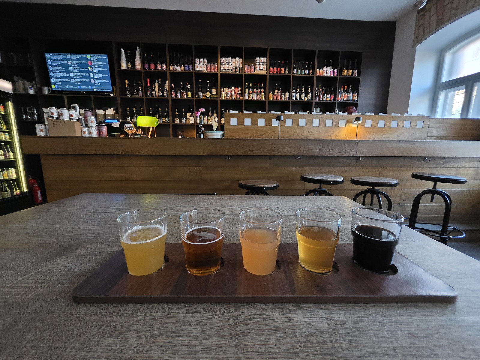 The set-up, a mixture of traditional bookshelves and the shiny new Untappd screen. It’s a fine combination. The draft beer style is well curated with a range of beer types, but there’s also an equally thought through selection of bottles and cans. The team member was engaging and knowledgeable about beer, she thought I’d like the chilli beer I was looking at and she was entirely correct. The prices here are for the higher end for Vilnius, but on an international standard for an on-trend and decadent craft beer bar, I thought they were reasonable.