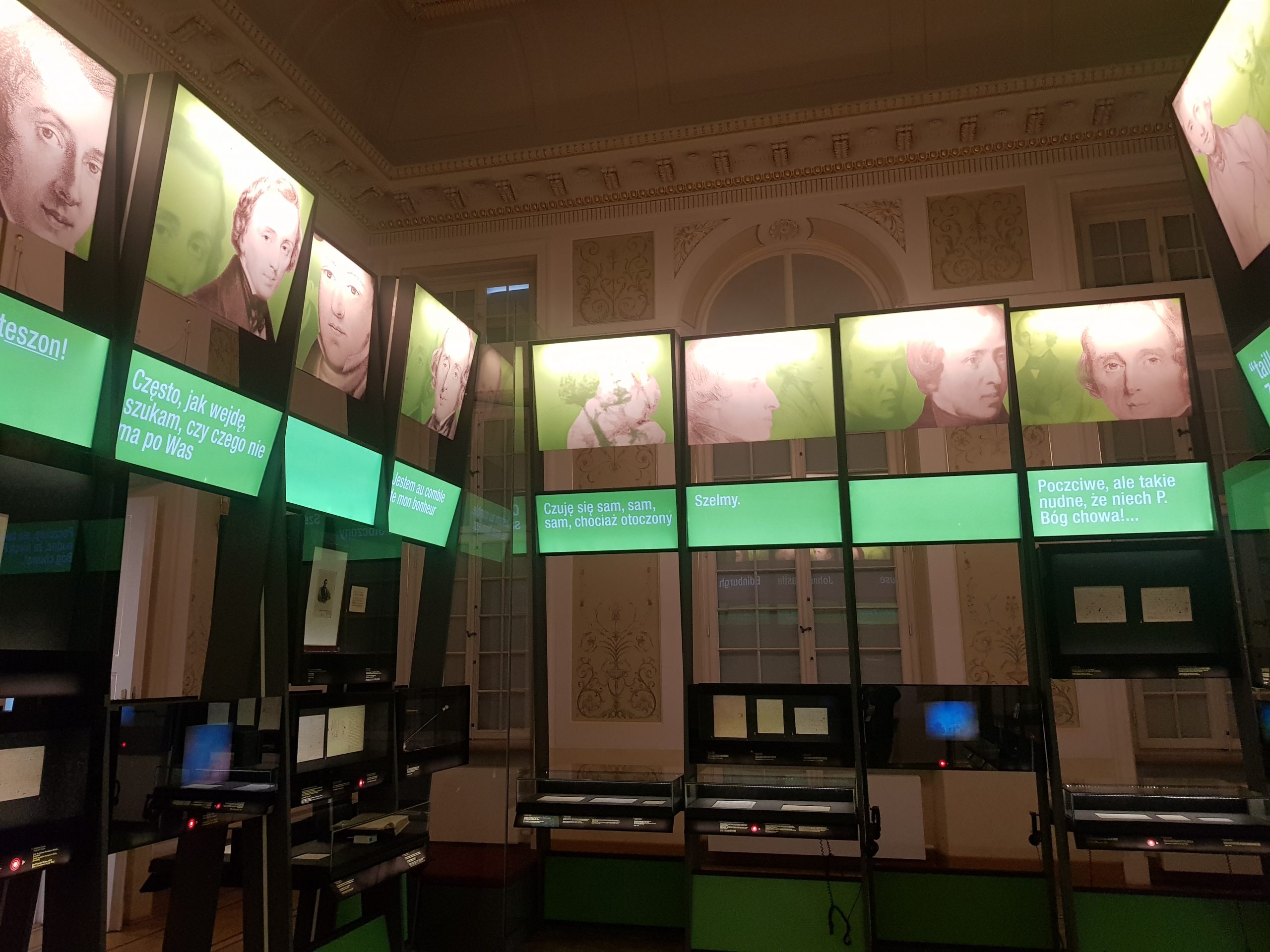 A room full of screens with headphones attached for those who wanted to listen to Chopin’s museum.