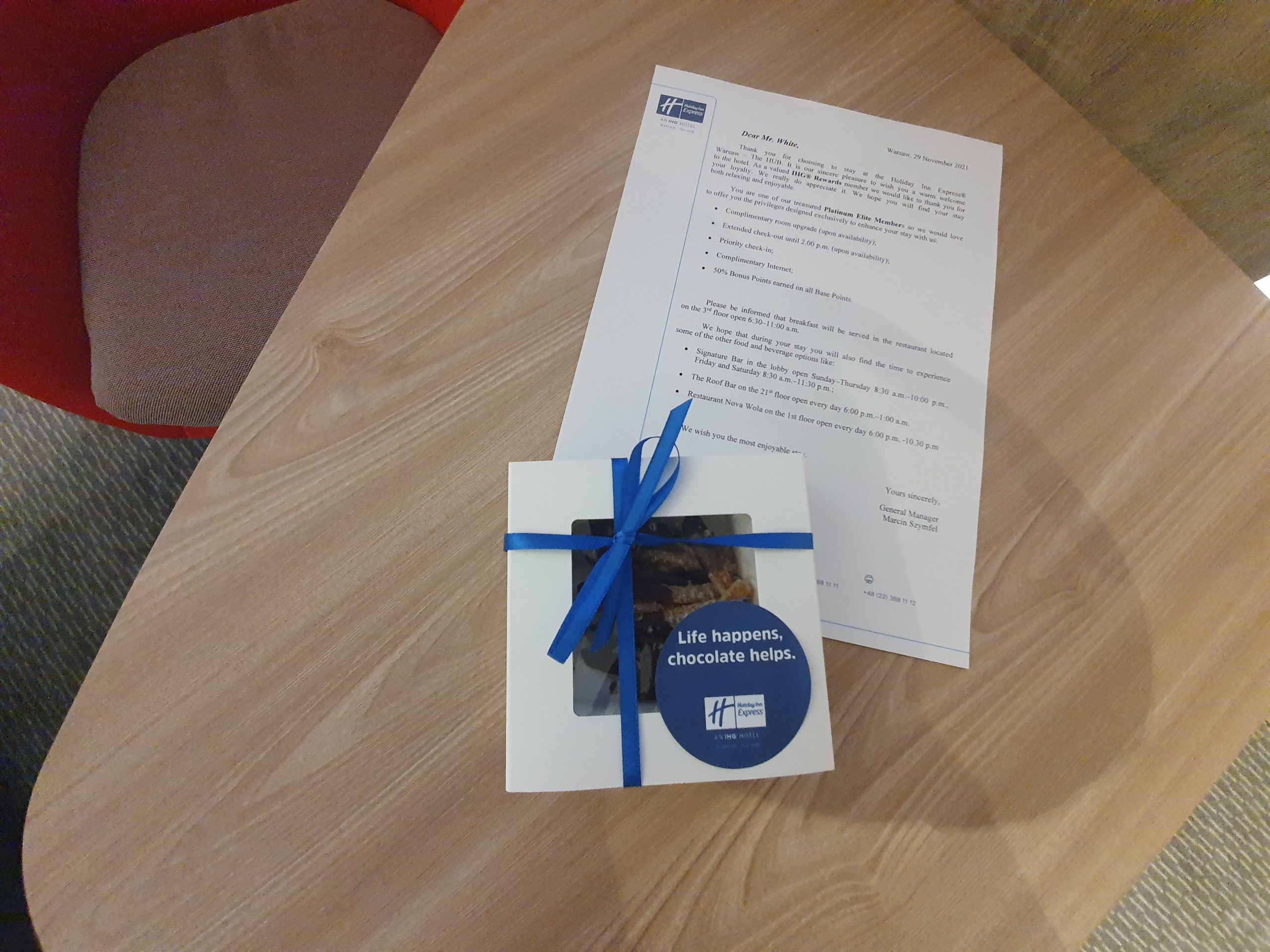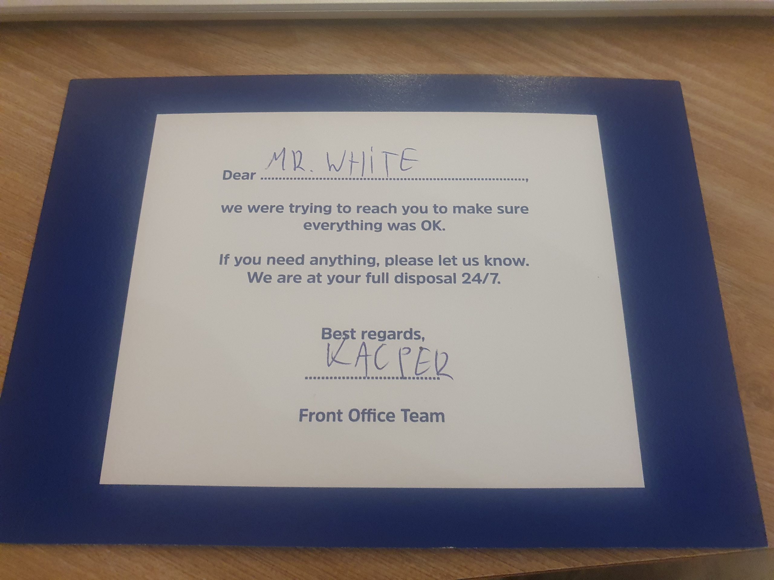 There was a courtesy call from reception a few minutes after I got to the room, which I ignore as I always do. They followed it up later with a card, which is a very nice gesture.