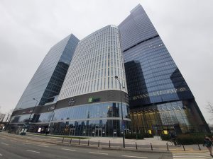 This is the joint Holiday Inn Express and Crowne Plaza at the HUB in Warsaw, a hotel which opened last year which is entirely operated by IHG. Roughly, the top half is Crowne Plaza and the bottom half is the Holiday Inn Express. Crowne Plaza get a nice reception at the front of the building and they’ve shoved the Holiday Inn Express reception to the back, although it’s not very well signed.