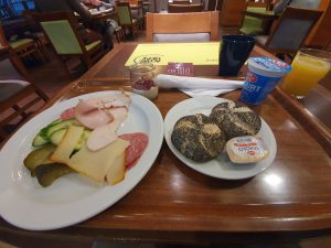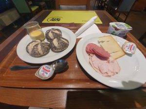 And food photos from the two mornings that I was staying at the hotel (I mention that in case it looks like this was just one breakfast, which would have been a little greedy). This is just the sort of breakfast that I like, cold cuts, cheeses, bread rolls and everything tasted of a decent quality. And there’s a certain decadence to having blue cheese in the morning, that’s always a delight.