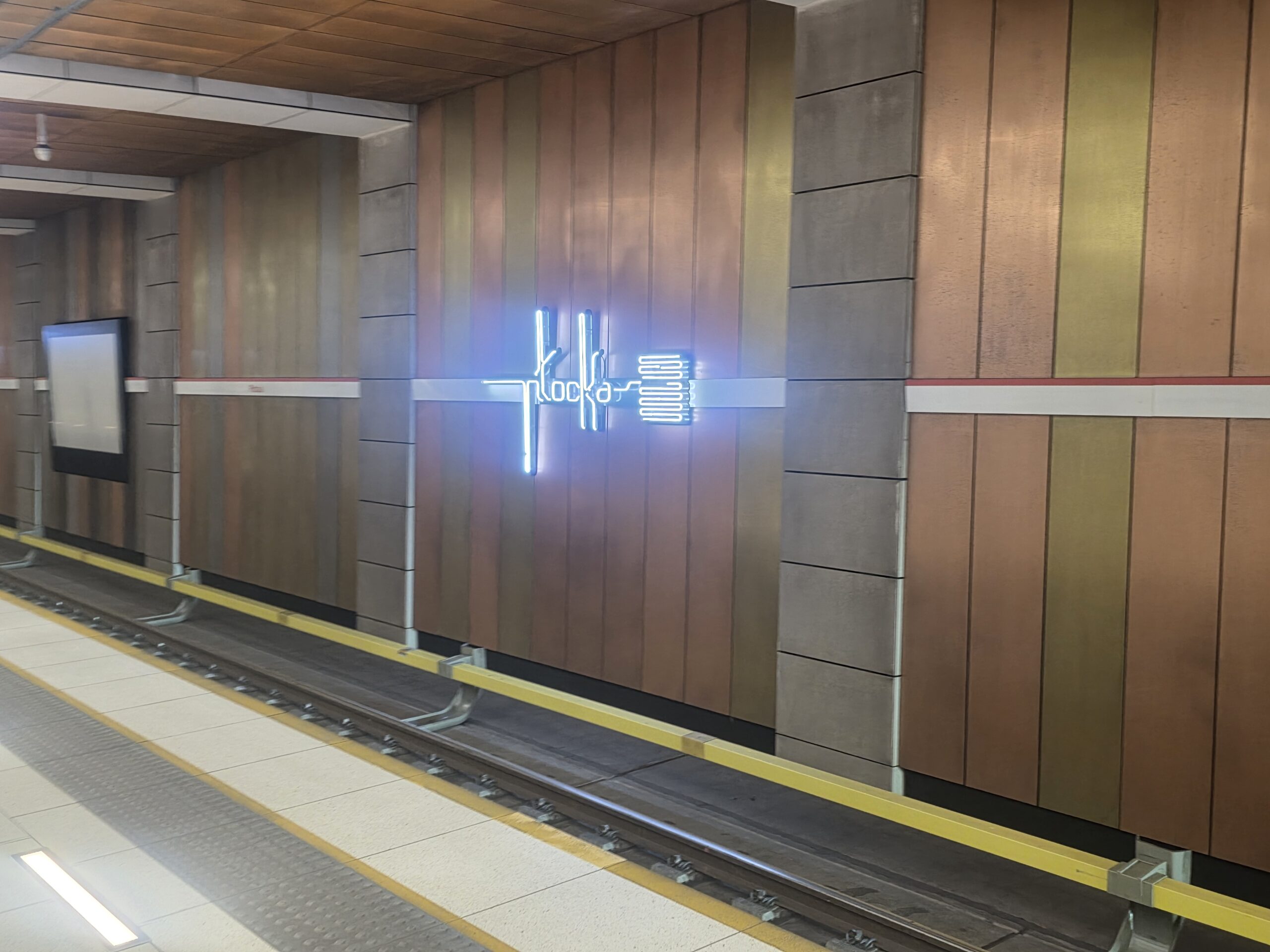 A very jazzy sign on the platform of Płocka, which is located on the M2 metro line. It’s all relatively new, the station opened on 4 April 2020 and is the first station of the extension to the existing line.