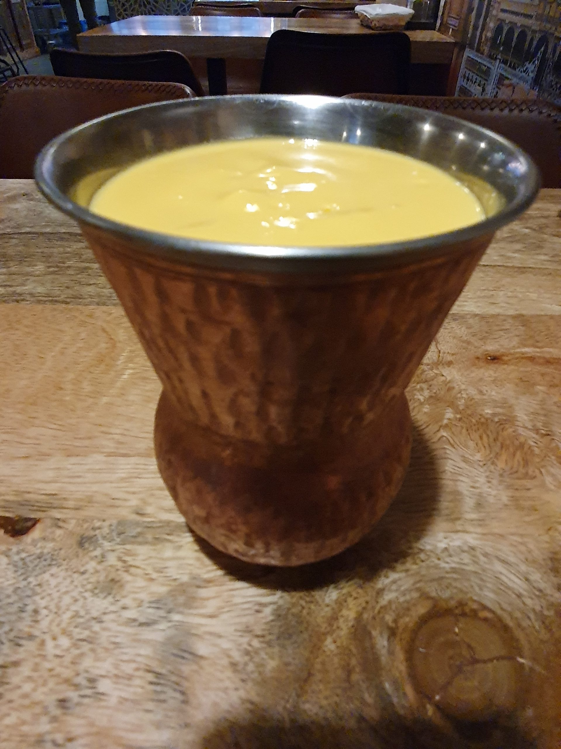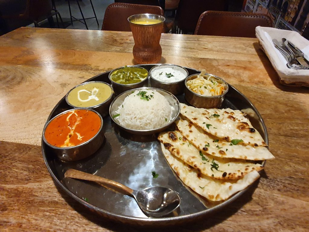 The mango lassi, which came with the thali deal. The service was attentive and friendly, with around four tables with customers out of the fourteen or so tables in the restaurant. It was all clean and comfortable, a relaxed environment.