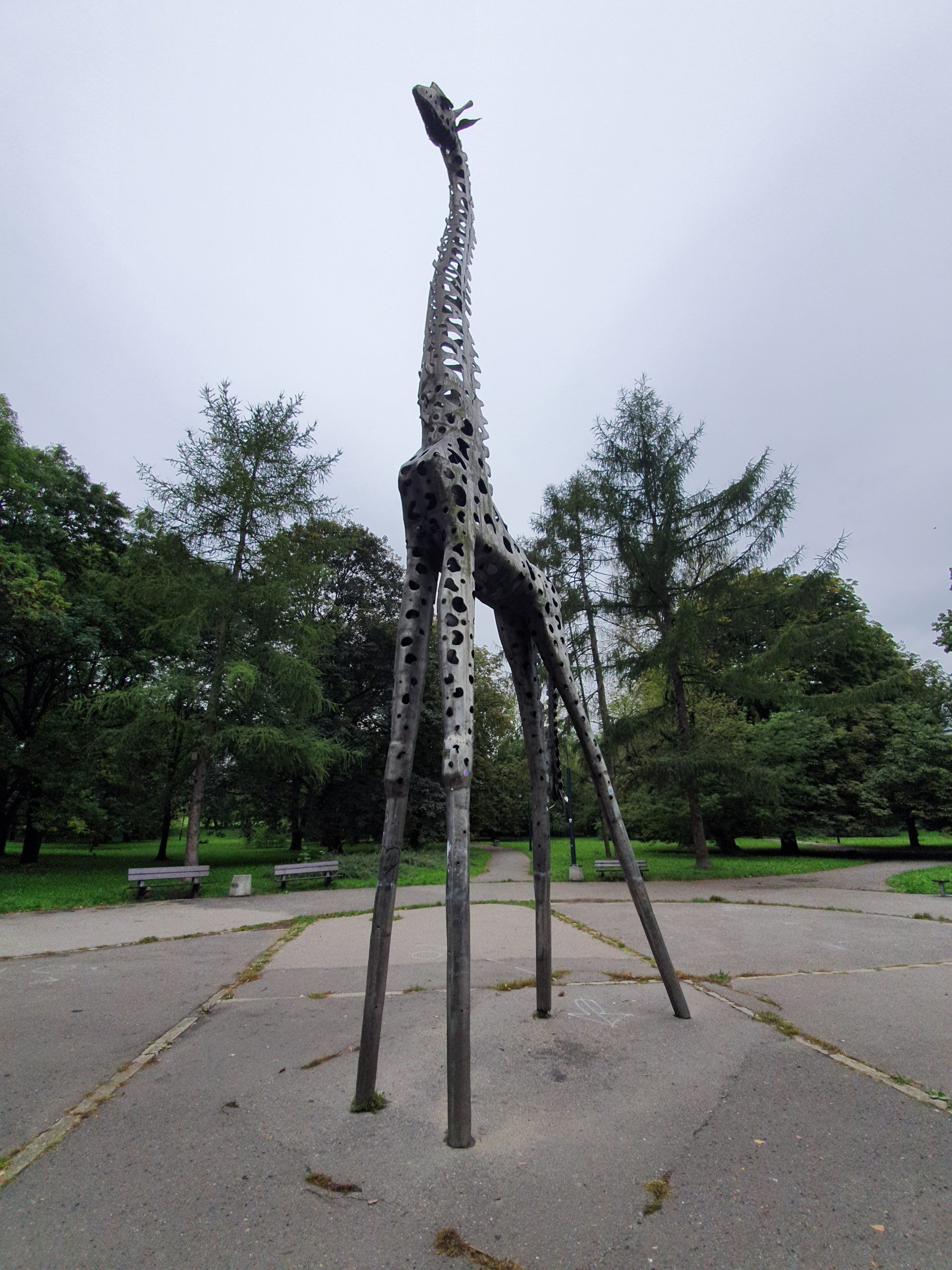 This rather lovely giraffe sculpture was designed in 1967 by Władysław Dariusz Frycz, for a metal sculpture exhibition which was being held in the city. There’s a similar sculpture over in the Woda district of Warsaw, which is in the west of the city. This one is handily located near to the city’s zoo, within Park Praski.