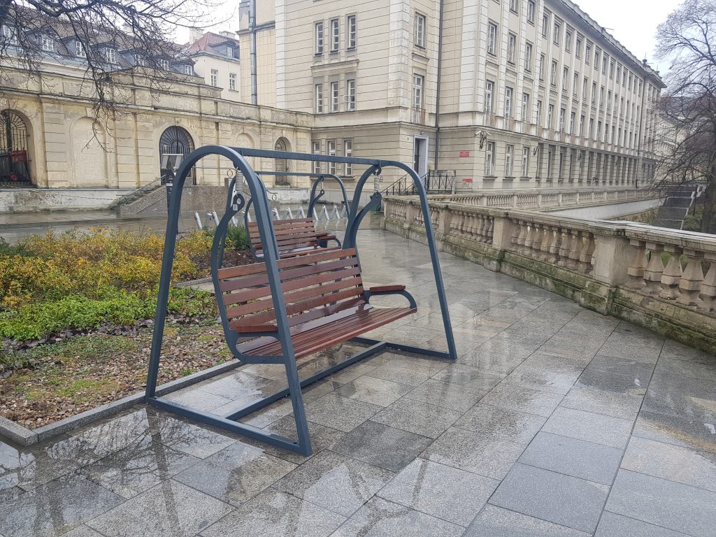 This is an interesting take on public benches, located along the Royal Route in Warsaw. How very modern.