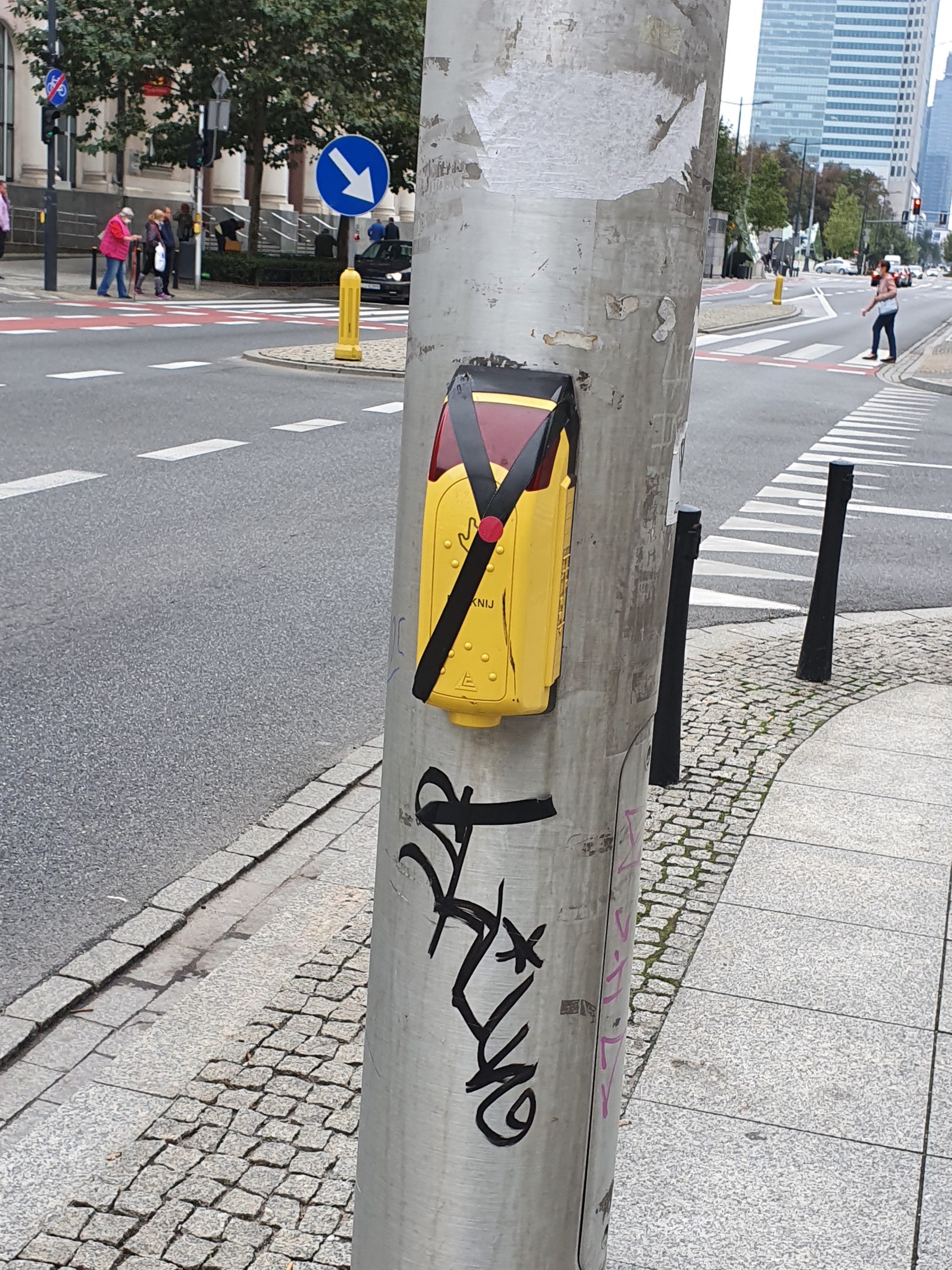 One thing I’ve never quite understood in Warsaw, and indeed all of Poland, is that these buttons rarely seem to do much as pedestrian crossings go green soon enough without pressing anything. I’m sure they likely do and I’m an idiot, but anyway. Poland has had them taped up in Warsaw for months, thousands of them across the city, and everything still seems to work just fine. So, my theory persists about their usefulness, although I assume that they have some functionality that is useful to those with limited vision.