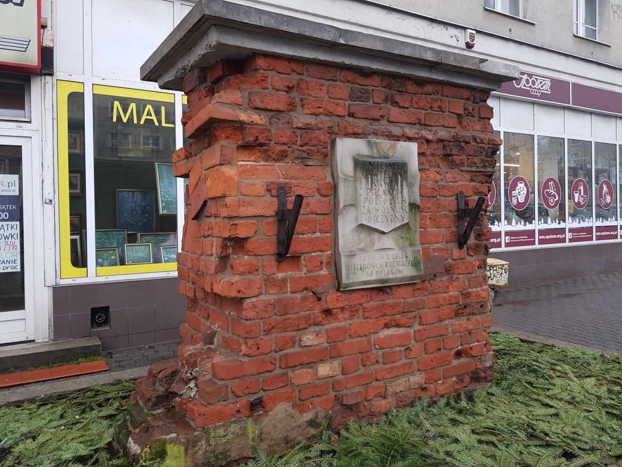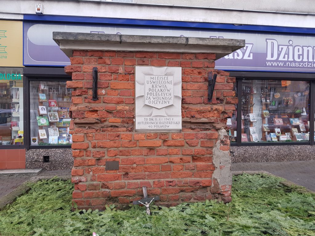 Located just a few metres away is this memorial, placed on the remainder of a building which once stood here. This memorial also marks killings ordered by Kutschera, with thirty Poles being shot here on 26 October 1943. At the time, this was also the intersection with Rymarska Street, but the road layout has changed and this street no longer exists.