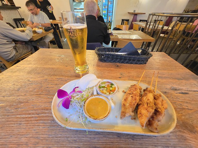 They had some Polish beers, but adding to the Thai authenticity I went for a Singha beer. It’s a pale lager, but it seemed light and appropriate for the meal, although I suppose in that sense it’s both exotic and banal. It came in a bottle, but the team member poured it into the glass and took the bottle, which doesn’t help for Untappd photos if I’m being honest but I was there for the food rather than my Untappd feed.