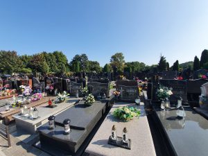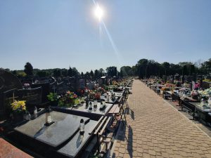 I don’t have much to add about this cemetery in Warsaw other than to note the remarkable number of flowers on the graves (compared to British ones at least) and how spotlessly clean it was. It was quite a busy cemetery with quite a community feel it and I got the impression that tending graves was bringing people together.