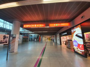 This moderately concerned me for a while, the signs for the railway into the city centre have been taped over. It’s also fair to say that there were nearly no passengers in the terminal, it all felt a little desolate.