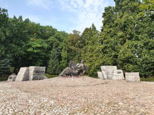 The figure has a shield, a deliberate reminder that the people of Warsaw were defending themselves from attack and weren’t the aggressors. The stones in front of the monument were taken from around Wola, to signify the blood of Poles which had flowed onto them.