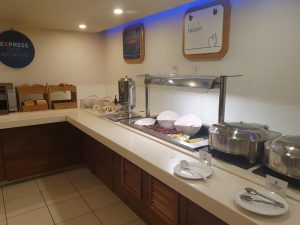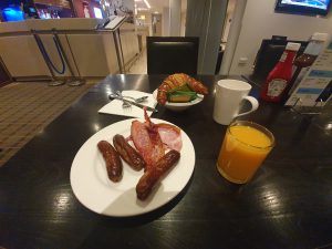 Not entirely healthy perhaps, bacon and sausages, alongside a croissant. The food was the usual basic brand standard from Holiday Inn Express, nothing there beyond the minimum. The coffee cups weren’t the cleanest which wasn’t ideal and I had to pick out the crispiest bits of bacon amidst the rest which looked like it had vaguely been wafted over a naked flame for a few seconds.