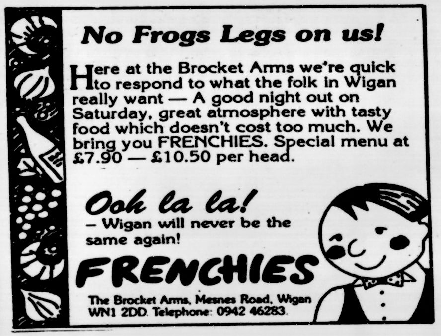 An advert from 1991, some interesting marketing going on there and I note that the food is still about the same price 35 years later.