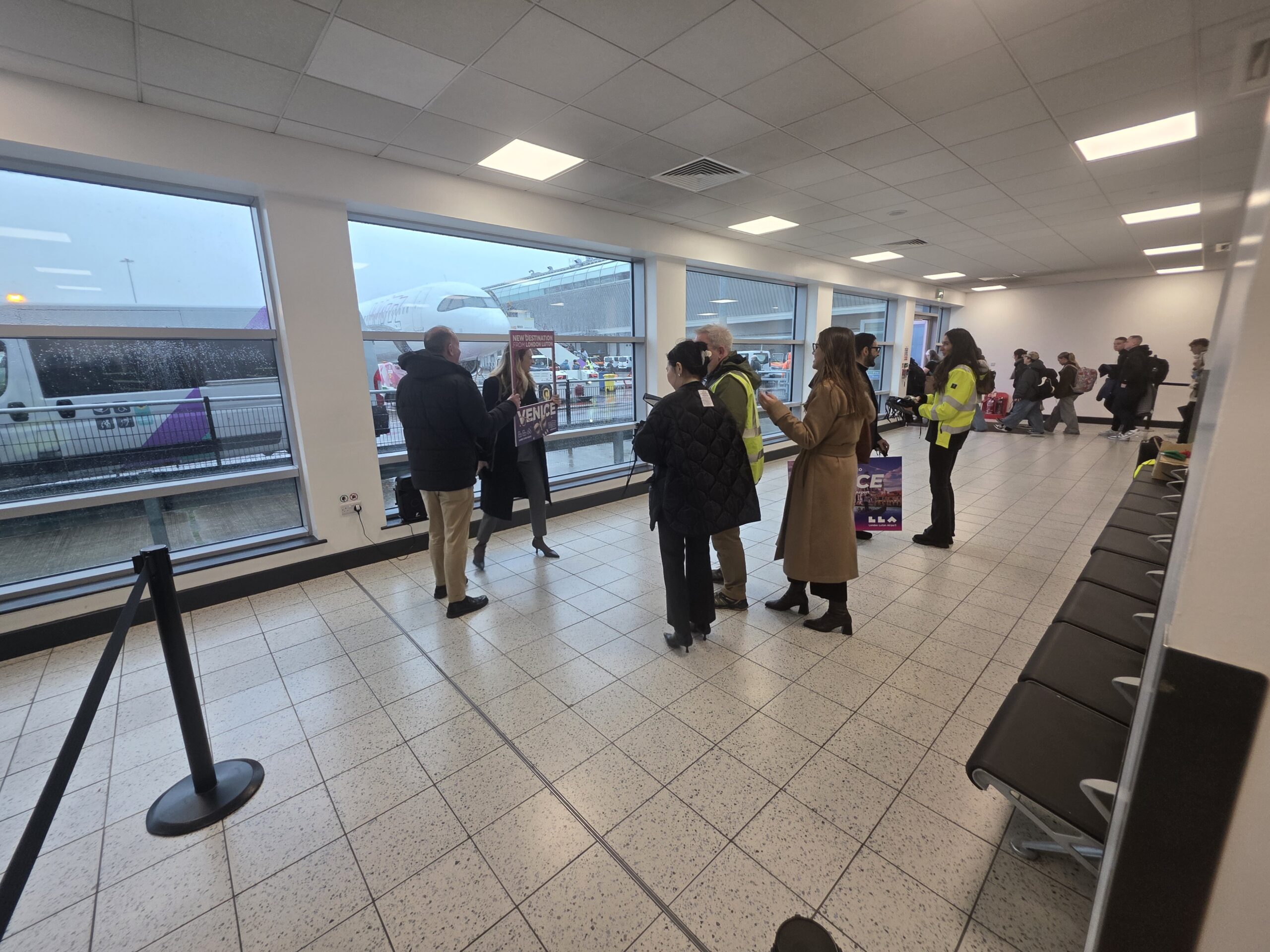 That special event was that it was the inaugural flight from London Luton to Venice Marco Polo airport, so they were making something of a thing of it.