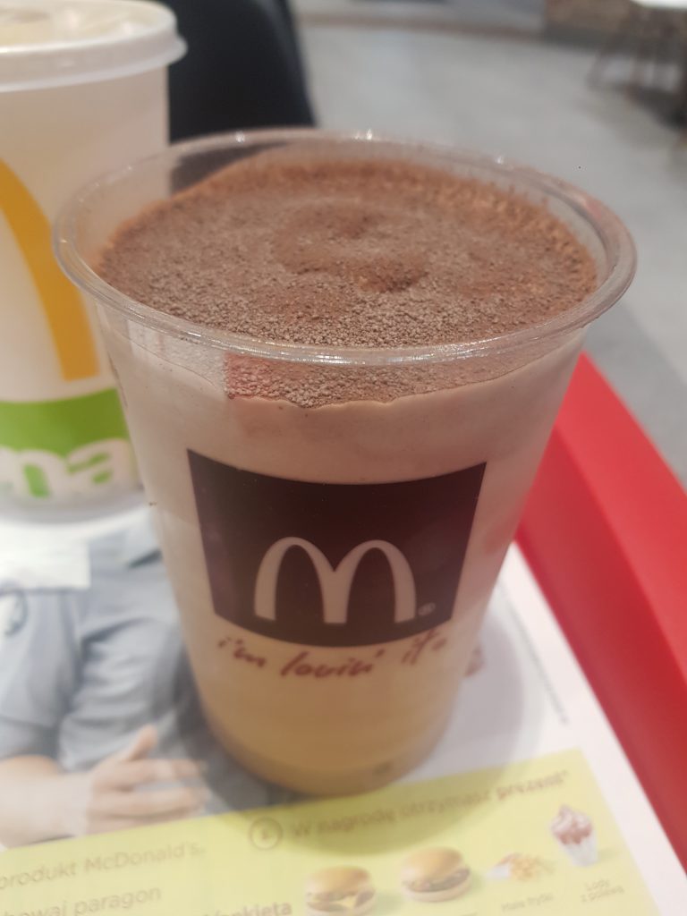 And, this is the Bounty Shake, which they probably sell in the UK, but I don’t tend to bother going into McDonald’s back at home. It is rather glorious, although also quite thick, with a cocoa milk topping. I’d have liked sliced bits of Bounty to be lobbed into the drink, but it was still perfectly acceptable. It was also quite expensive in terms of Polish prices, just over £1.30 for a large version.