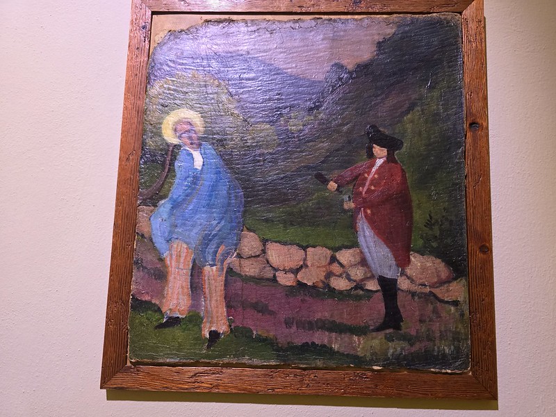 Back to the artwork, which he painted in 1912, it’s just called “Costume Scene in a Landscape” which doesn’t help with any meaning which the artist intended. I can’t work out what I’m actually looking at, which certainly adds some complexity to arrangements. Is the character on the left wearing an interesting hat or is that a halo? And what is the meaning between the two characters?
