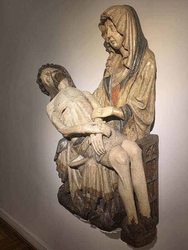 This pietà is in the collections of the National Museum in Wrocław and it was made in the area, likely in around 1420. It’s a depiction of dead Jesus following the crucifixion, designed to have emotional intensity and evidently from the Gothic tradition. It’s a medieval polychrome wooden statue, although the colours have rather faded away over the centuries. I am fascinated by these depictions, not because they’re particularly cheerful, but because I can try and imagine the thousands of people in the medieval period who would have looked at them and maybe inspired by them.