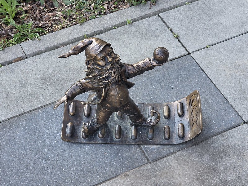 In the Gnomes of Wrocław collection, this is Farmaceut, the Pharmacist Dwarf, with his own pill blister pack. It’s linked to the Boehringer Ingelheim, a German pharmaceutical company with strong connections to Poland.