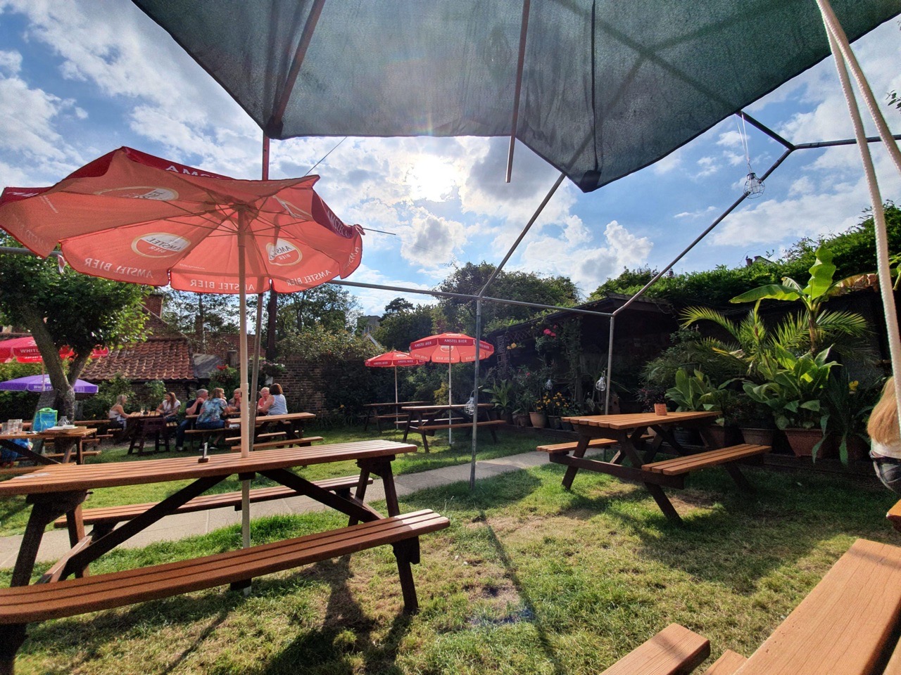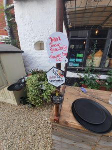 The pub itself isn’t open for inside customers at the moment, it’s all a bit difficult to manage any safe form of distancing. What is open is the beer garden and there’s a staff member at the entrance guiding customers to their tables, which usually have to be pre-booked. The pub has also made clear what to do and where to wait, with track and trace being in operation here.