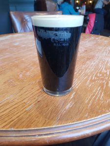 My half pint of the Brass Castle Bad Kitty beer, which doesn’t have huge initial flavours but there are some pleasant afternotes of vanilla and chocolate. I liked it, especially as it’s a local beer to here, with Brass Castle being located at Malton.